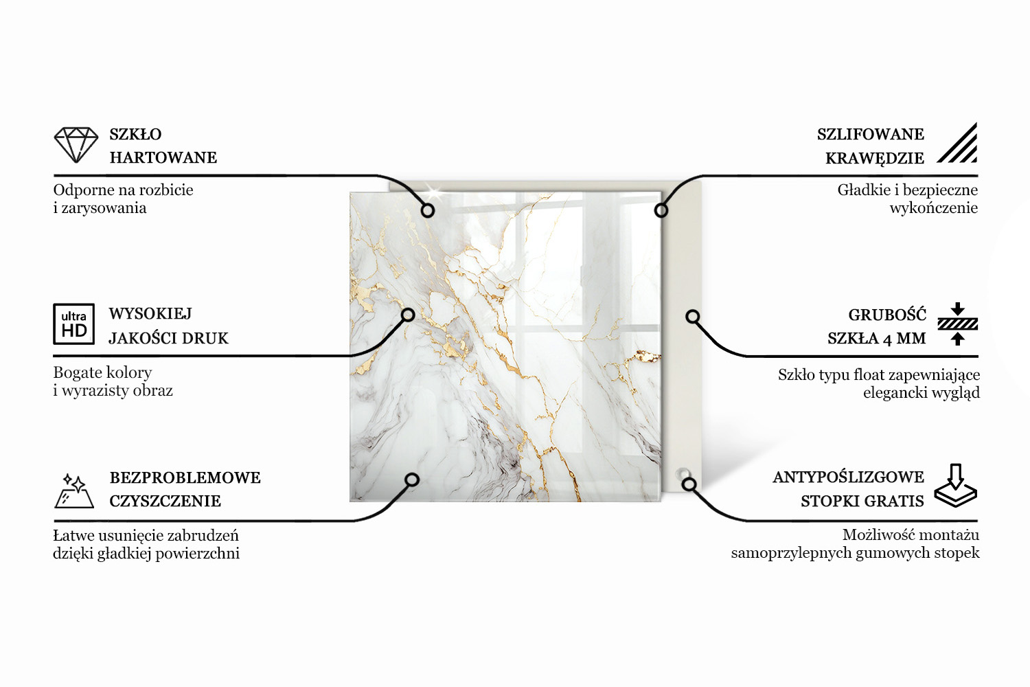 Dodaj nową energię do swojego wnętrza, wybierając szklany blat na stół z nadrukiem Rysy na betonowej powierzchni, który łączy styl z funkcjonalnością. To elegancki dodatek, który nie tylko chroni powierzchnię stołu, ale też skutecznie podkreśla charakter pomieszczenia. Jego prostokątny kształt oraz starannie dopracowany nadruk sprawiają, że blat przyciąga wzrok i nadaje przestrzeni nowoczesnego, estetycznego wyrazu. Odbijająca światło powierzchnia rozjaśnia wnętrze i optycznie je powiększa, nadając aranżacji świeżości i lekkości.